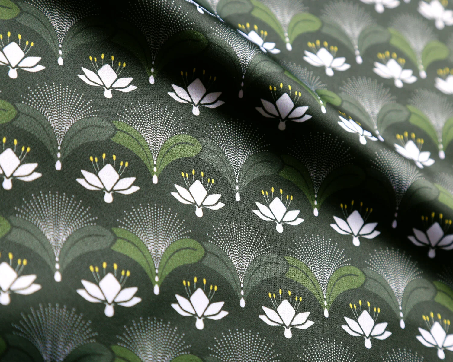 The pattern contains a repeat 'sparkling champagne' motif with almond shaped droplets referencing the smell of bitter almonds that Hercule Poirot knows so well...