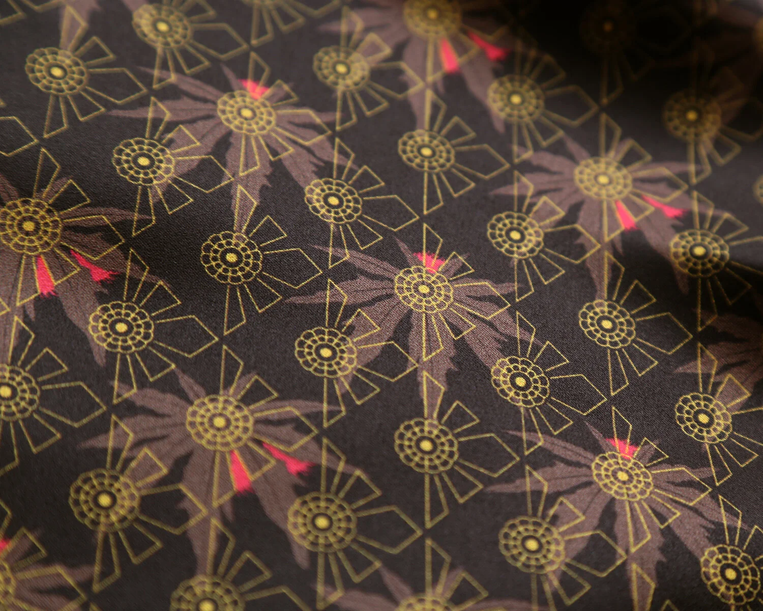Agatha Christie had her murderer add ricin to the fig paste sandwiches, oh yes she did. The spiny seed pods of the Castor Oil plant are bright pink, and the seeds/beans within them, a lovely pattern of bronze and brown. Inspiration for the pattern’s shapes came from sandwiches, doilies and The Royal Greenhouses of Laeken.